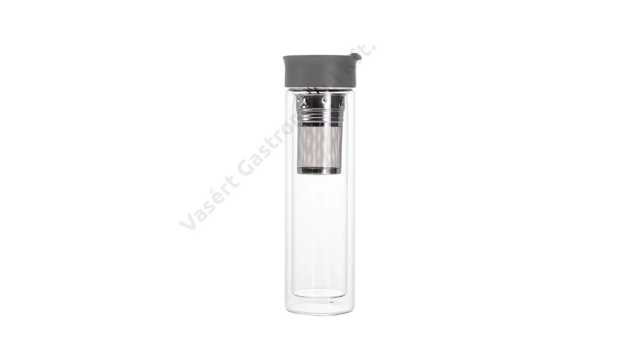 Duplafalú üveg kulacs acél diffúzorral 350ml. Két darab acél betéttel, egy a teához egy pedig a gyümölcsökhöz használható. A duplafalú kulacs boroszilikát üvegből és 18/10 rozsdamentes acélból készült. Fenntartható választás, a kulacs végtelenül mosható és újrafelhasználható. Ilsa | IL07650350VCV