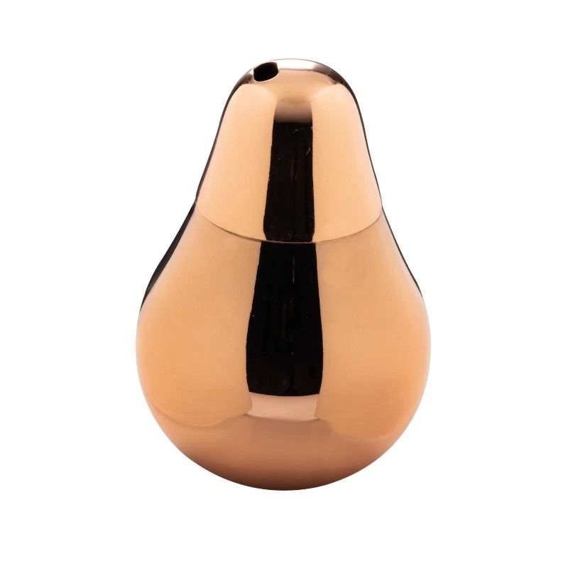 Körte formájú fém koktélos pohár, rosé színű 400ml kapacitással. 18/10 rozsdamentes acélból készült. Igazán egyedi hangulatú és csodálatos tervezésű koktélos pohár mely egyedivé teszi akár a bárpultot akár egy családi összejövetelt. Hideg vagy meleg italok kínálására is alkalmas. Különleges formája lehetővé teszi a varázslatos ünnepi hangulatot az asztalon, melynek csak a képzelet szab határt. A termék elérhető arany és fekete színben is.