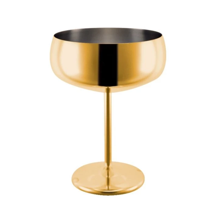 Manhattan lounge fém koktélos pohár, arany színű 400ml kapacitással. 18/10 rozsdamentes acélból készült. Igazán egyedi hangulatú és csodálatos tervezésű koktélos pohár mely egyedivé teszi akár a bárpultot akár egy családi összejövetelt. Hideg vagy meleg italok kínálására is alkalmas. Különleges formája lehetővé teszi a varázslatos ünnepi hangulatot az asztalon, melynek csak a képzelet szab határt. A termék elérhető fekete és rozé színben is.
