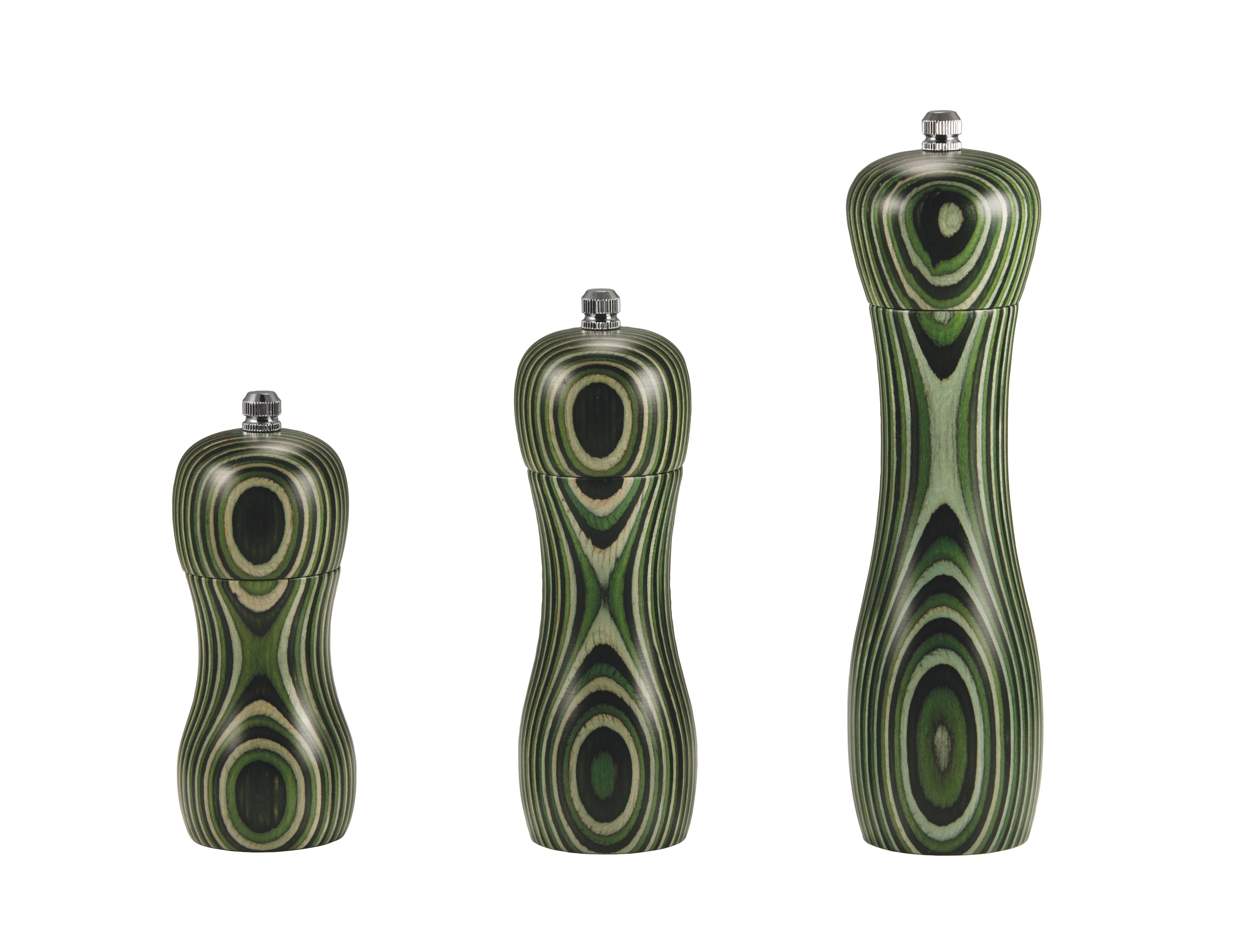 Lenyűgöző külsejével asztalunk dísze lesz ez a nagyon különleges őrlő. A fából készült borsőrlő kerámia őrlőfejjel készült, így akár sóőrlésre is használhatjuk. A malom teste a fa és a zöld szín különleges kombinációja, mintázata a kaleidoszkópra emlékeztet. Kiváló minőségű termék, mely hosszú ideig asztalának dísze lesz. | Ilsa | IL13400150LCV