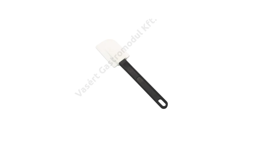 Hőálló szilikon lapát, melynek nyele fekete, feje fehér. Kiváló minőségű, cukrászdákban, konyhákban, de akár otthon is kiválóan használható termék. Teljes hossza 25 cm, a 'fej' 8,5 x 5,3 cm méretű.